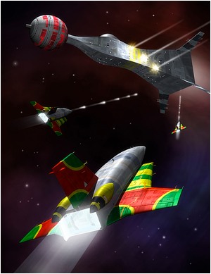 In deep space they were perhaps no better equipped than other ships of their kind but proved extremely agile and stable in the moderately dense atmospheres. Their large wing surface gave them the ability to operate in a broad speed range and this coupled with their economical use of fuel and manoeuverability made them a dangerous adversary. These characteristics and their armament also made them suitable for ground attack, a role they increasingly adopted as the Proximans' control of airspace diminished.