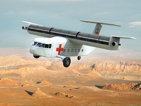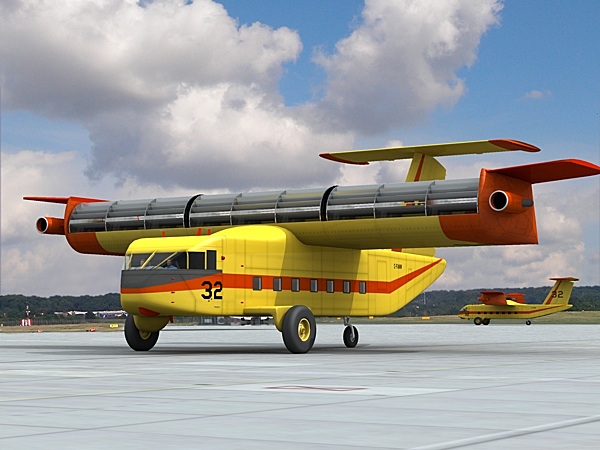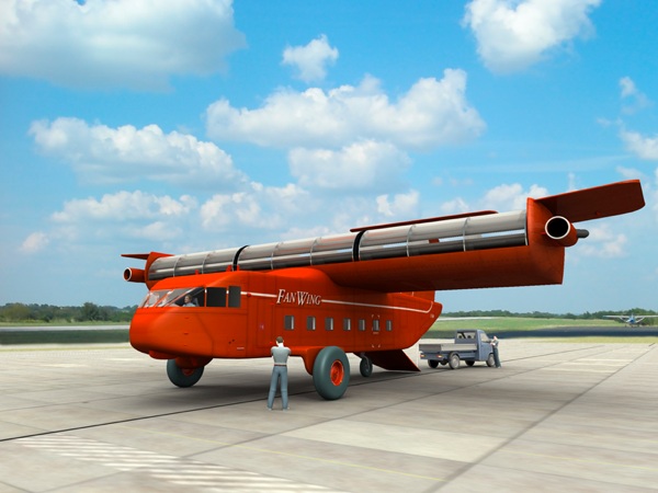 The aircraft has a cross-flow fan along the span of each wing. The fan pulls the air in at the front and then expels it over the wing's trailing edge. In transferring the work of the engine to the rotor, which spans the whole wing, the FanWing accelerates a large volume of air and achieves unusually high lift-efficiency.