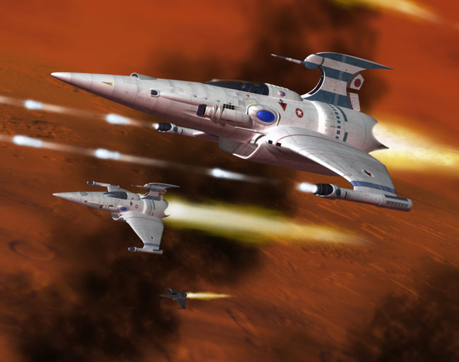 The Barracuda proved to be as fast, powerful, and maneuverable as advertised. Though unarmored, it was heavily-armed, and simulations suggested that it would be superior to the larger and bulkier Piranha in a dogfight. Barracudas were widely deployed on Mars as well as on Earth, and flyovers of strategically important points were a common sight during the war, both as a training exercise and as a reassurance to the population below.